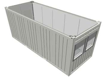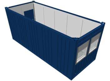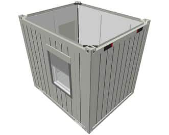 Entdecken Sie unseren vielseitigen BM20‘-Bürocontainer, konstruiert aus einem flexiblen Paneel-System, das eine Rauminnenhöhe von 254 cm bietet.