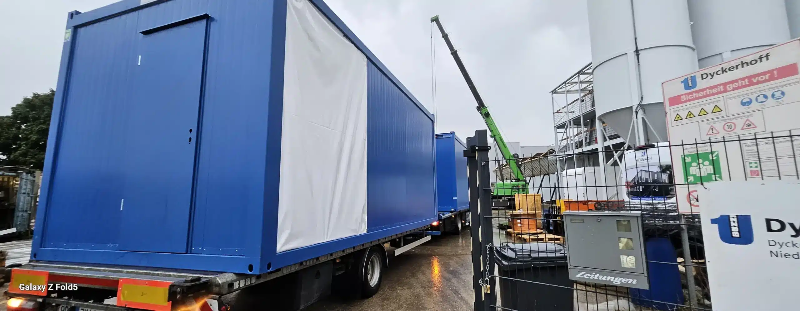 Für den Standort Bottrop benötigte Dyckerhoff kurzfristig funktionale Containerlösungen für die Mitarbeiter. Die Anlage sollte getrennte Bereiche für Sanitär und Aufenthalt bieten und zugleich langlebig, pflegeleicht und optisch ansprechend sein.