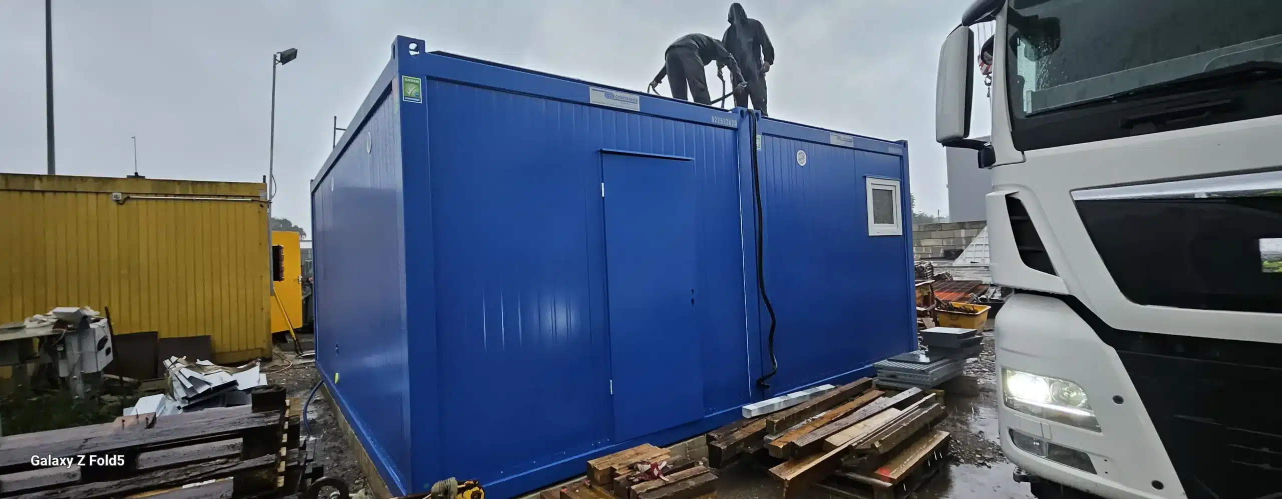 1 × Bürocontainer, 3 × Sanitärcontainer