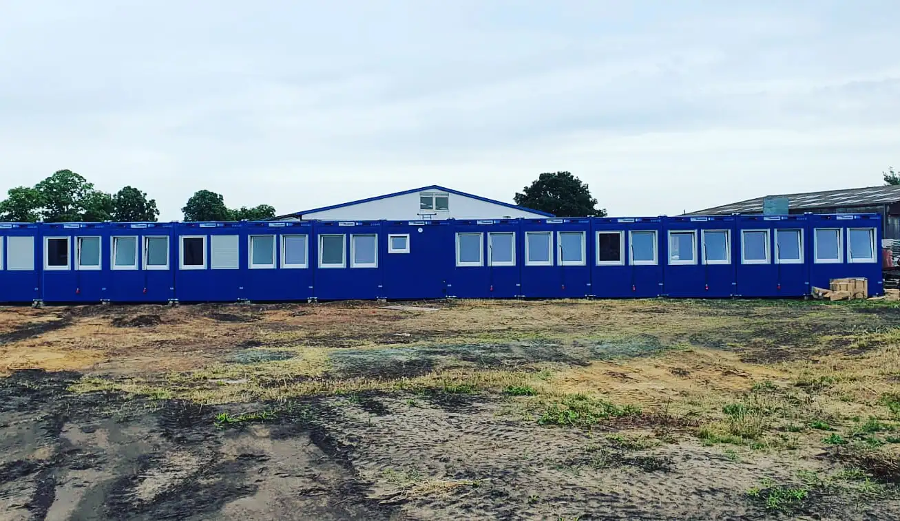 Wichtig war eine modulare, skalierbare Lösung mit integrierten Sanitärbereichen – in optischer Abstimmung zur Firmenumgebung.
